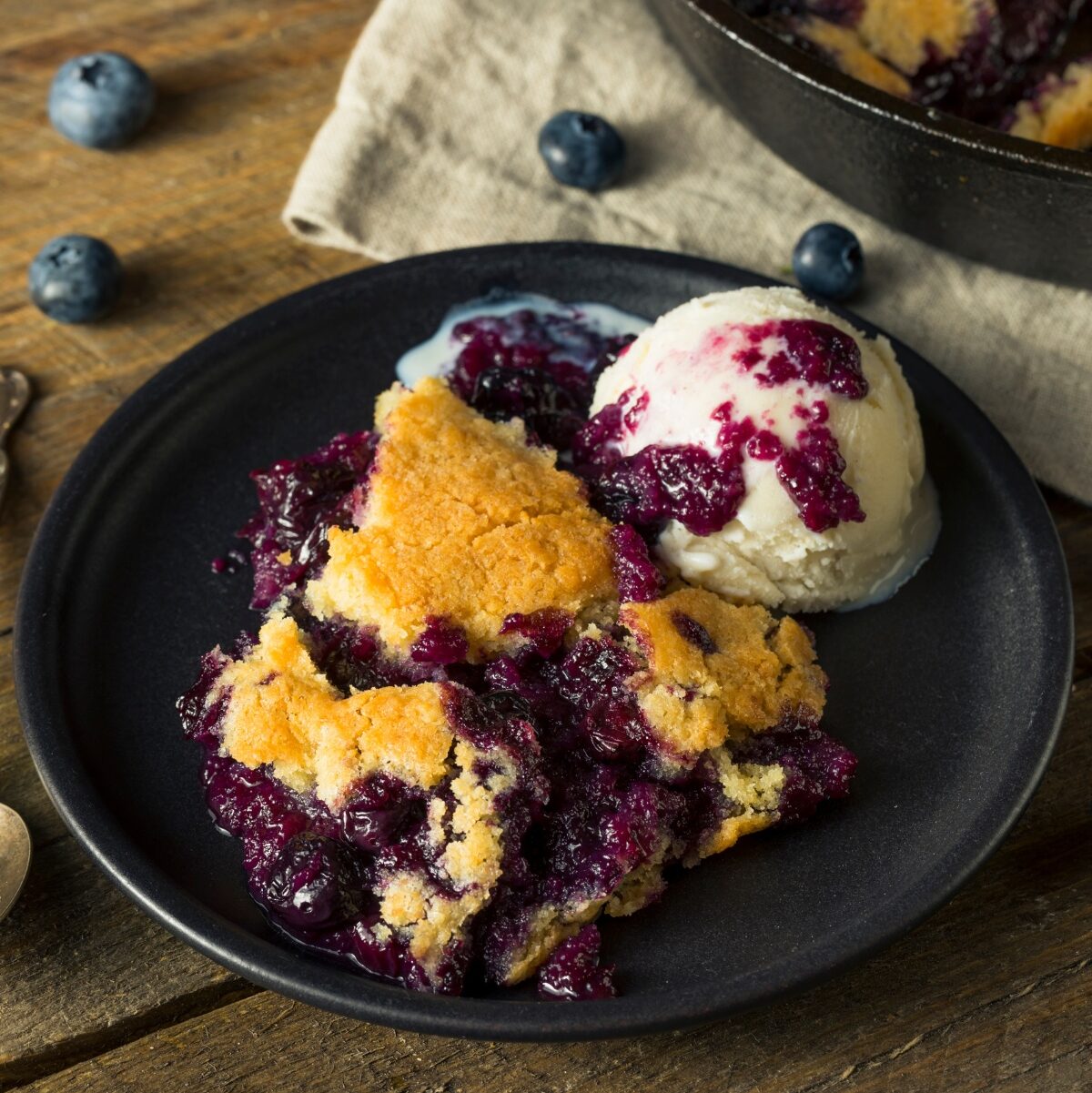 This Keto Blueberry Cobbler is filled with sweet and juicy blueberries and is topped with a buttery, crispy topping. It is perfect with a scoop of your favorite low carb vanilla ice cream!